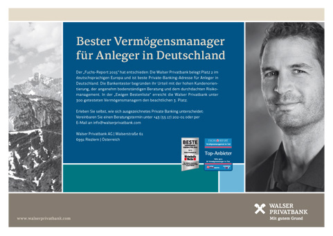 Preis 2015: Bronze Award beim 6. ICMA für den Kulturbericht der Walser Privatbank